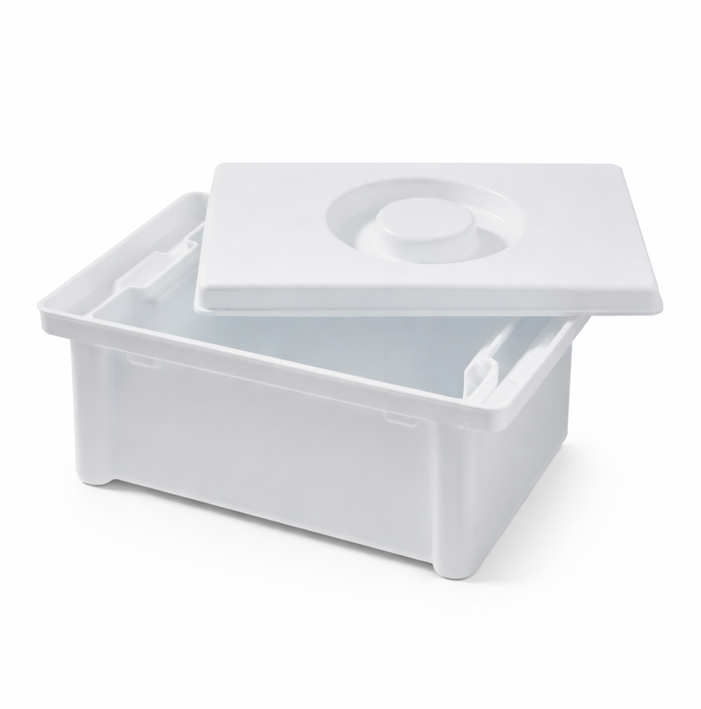 Komplektā ietilpst dezinfekcijas vanniņa ar vāku un sietu.